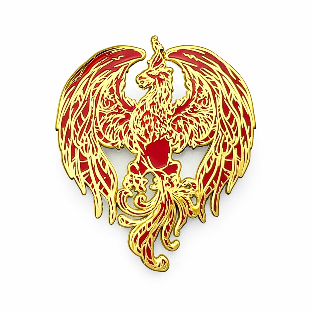 Rise from the ashes with the Golden Phoenix Enamel Pin, a powerful symbol of resilience, rebirth, and strength. This striking design features vibrant red enamel wings and a radiant gold-plated finish, capturing the legendary phoenix in the moment it rises again.
