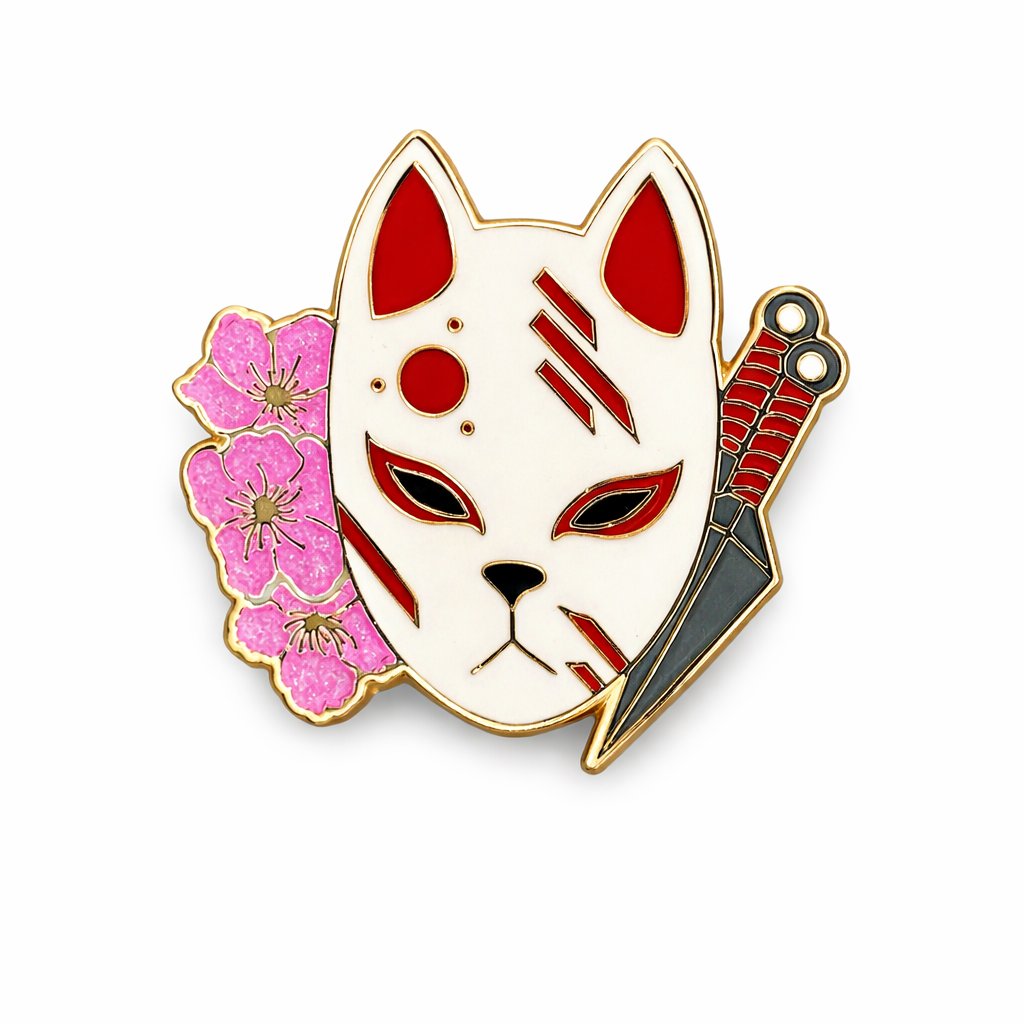 Kitsune Mask Enamel Pin – Japanese Fox Spirit Pin