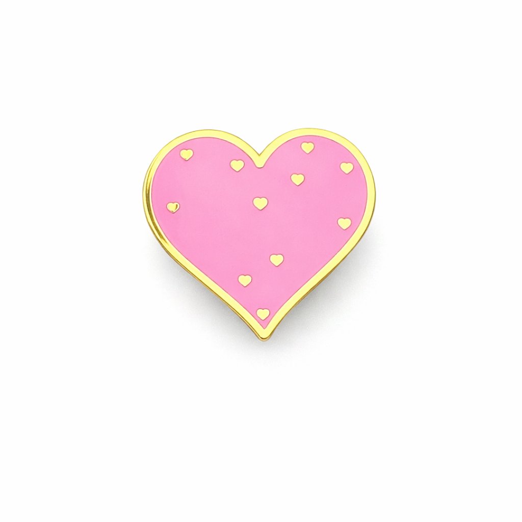 Pink Heart Enamel Pin – Cute Love Heart Pin with Gold Accents