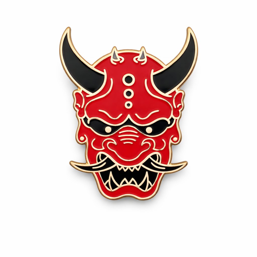 Red Oni Mask Enamel Pin – Japanese Yokai Demon Pin