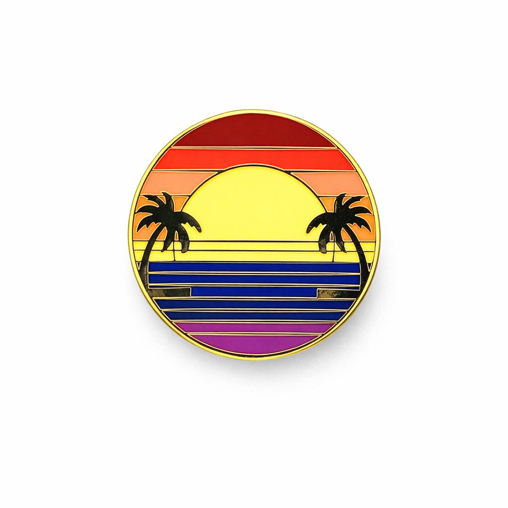 Retro Sunset Enamel Pin – Tropical Beach Palm Tree Pin